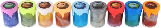 Ogni barattolo rappresenta un pianeta diverso con una caratteristica combinazione di colori. Lo slime è adatto a casa, a scuola e in ufficio – perfetto come strumento antistress e attività creativa.