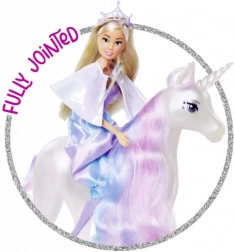 Scopri il mondo della fantasia con la bambola Steffi, vestita in abiti principeschi magici, ideali per ogni favola. Il suo fedele compagno, l'unicorno, non solo appare straordinario grazie alla sua funzione luminosa, ma permette anche di realizzare diverse acconciature grazie alla sua lunga criniera.