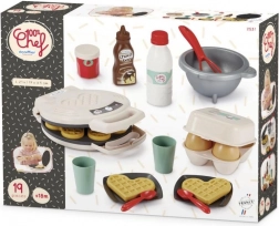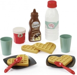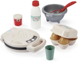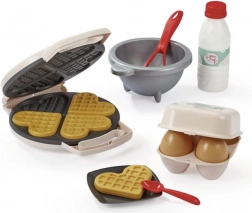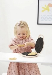 Questa macchina per waffle è ideale per i bambini che vogliono sperimentare la cottura. Il set include tutto ciò che serve per preparare deliziosi waffle. La macchina per waffle, delle dimensioni di 21 x 17 x 5 cm, viene fornita con diversi accessori. Puoi scegliere tra la preparazione di waffle con marmellata o copertura al cioccolato. Il set include anche stoviglie per due, uova, latte e una ciotola con frusta.