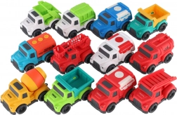 Scoprite il set di 12 camioncini compatti lunghi circa 10 cm, ideali per le manine dei bambini. Plastica resistente, colori vivaci e ruota libera assicurano facile maneggevolezza e tanto divertimento sul pavimento, nella sabbiera e in viaggio.