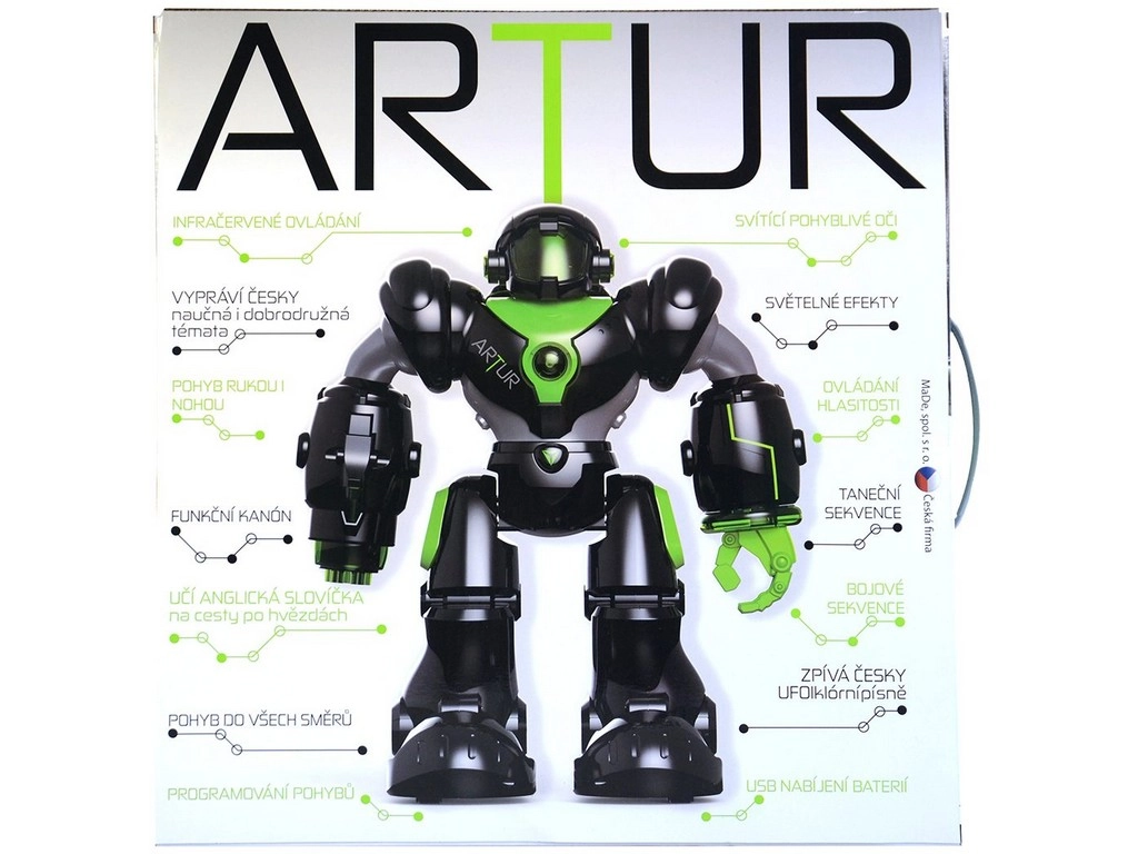 Il robot interattivo Artur fa parte dell'equipaggio spaziale Zigybot e offre temi educativi e avventurosi in ceco. Artur si muove, insegna parole inglesi e dispone di un cannone funzionante per proiettili di plastica per un divertimento senza fine.