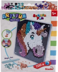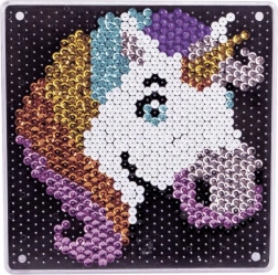 Set per creare una meravigliosa immagine di unicorno con paillettes scintillanti, ideale per un divertimento creativo e come bellissima decorazione per la stanza.