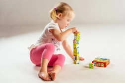 Il gioco con i cubi sostiene anche lo sviluppo della comprensione dell’equilibrio durante la costruzione di torri e della relazione causa-effetto durante l’abbattimento.