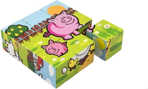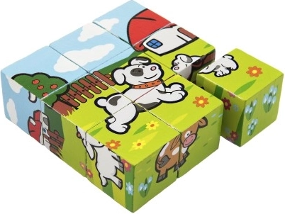 Questi cubi di legno offrono ai bambini divertimento nel comporre diverse immagini ispirate all’ambiente domestico. Ogni set include sei diversi design di animaletti che i bambini possono scoprire.