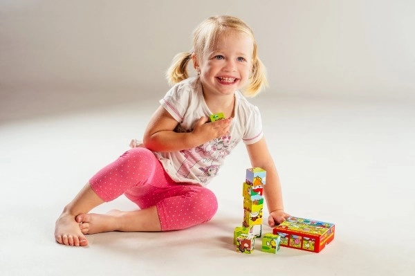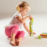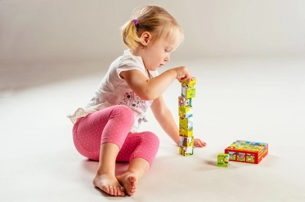 Giocare con i cubi favorisce lo sviluppo della motricità fine e del pensiero logico, aspetti importanti per la crescita del bambino.