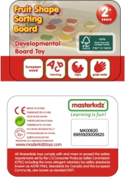 Ordina forme Frutta Colorata del marchio Masterkidz è un ottimo giocattolo in legno per bambini con molti scopi. Non solo garantisce divertimento, ma consente anche di imparare i nomi dei frutti e promuovere il consumo di frutta. Il bambino deve abbinare i vari frutti con i fori corrispondenti sulla tavola in legno, il che richiede concentrazione e analisi delle forme. Questa attività contribuisce anche allo sviluppo delle capacità di coordinazione.