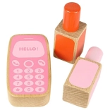 Il set contiene molti elementi interessanti necessari per lo styling quotidiano: smalto per unghie, rossetto, asciugacapelli, spazzola, palette di ombretti e pennello, specchio, pennello e persino telefono cellulare. È un set che troverai in ogni borsa o pochette cosmetica da donna!