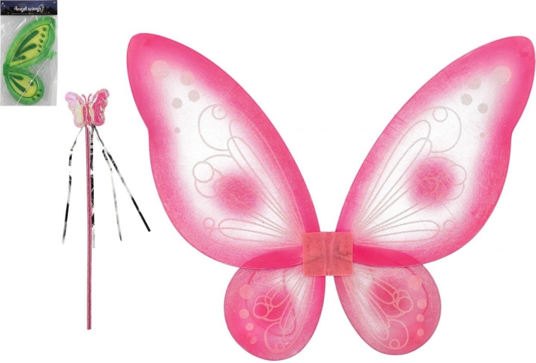 Il set include una bacchetta decorativa con farfallina e nastrini, che completa perfettamente il travestimento da piccola fata o farfalla.