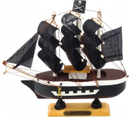 Realizzato in legno e finemente rifinito a mano, questo modello aggiunge un'atmosfera marina all'interno. Grazie alle sue dimensioni ridotte, si adatta facilmente a qualsiasi stanza - su uno scaffale, una vetrina o una scrivania. È una splendida decorazione per gli amanti delle leggende piratesche e dello stile vintage.
