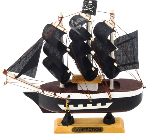 Modello decorativo di nave pirata è una miniatura accuratamente rifinita con vele nere e un design pirata distintivo. Ideale per gli amanti dello stile marittimo e collezionisti.
