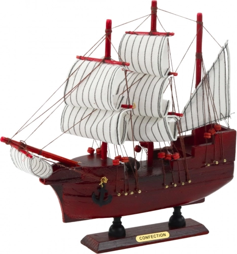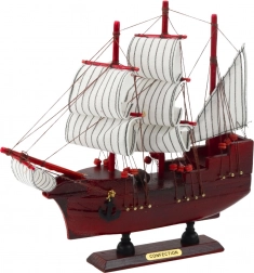 Il fresco modello a tre alberi offre l'eleganza delle classiche navi dell'era delle grandi scoperte. È realizzato con cura in legno e rifinito a mano, garantendo alta qualità e dettagli lavorati. L'intero modello è posto su una base in legno con una targhetta ed è pronto per una presentazione impressionante.