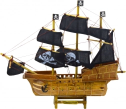 Il modello di veliero a tre alberi in stile pirata attirerà ogni appassionato di avventure marittime. Progettato secondo le leggendarie navi corsare del XVII e XVIII secolo, questo modello offre uno scafo in legno naturale con imitazioni di cannoni sui lati e una linea marcata di poppa e prua. Vele nere in tessuto con stampe di teschi e ossa incrociate e bandiere pirata conferiscono alla nave un aspetto irresistibile, caratteristico, ricordando i predoni del mare e la leggendaria libertà sull'oceano aperto.