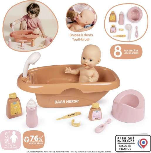 Il set per bambini SMOBY BABY NURSE offre una cura realistica della bambola: grande vasca con rubinetto e doccetta, ricchi accessori e lavorazione di qualità in plastica resistente. I bambini si divertiranno con il gioco di ruolo del bagnetto e dell’allattamento, svilupperanno empatia e motricità fine e, grazie ai numerosi accessori, impareranno le basi della cura del bebè.