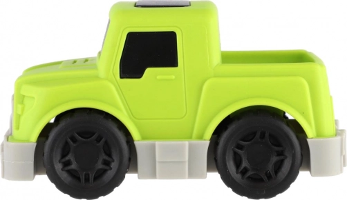 I modelli sono disponibili in 4 varianti (vettura, SUV, pickup e camion) nei piacevoli colori blu e verde lime. La dimensione compatta di 9 cm entra nello zainetto o nella tasca del passeggino, ideale a casa, in visita o in viaggio.