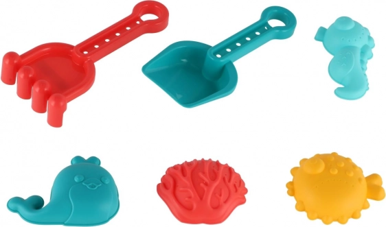 Nella confezione trovi tutto il necessario per creare: paletta per raccogliere, rastrello per livellare e modellare e colorate formine per forme divertenti. Il set è perfetto nella sabbiera, in spiaggia e anche nella vasca.