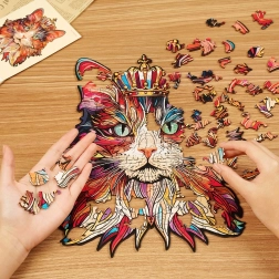 Entrate nel mondo artistico del puzzle in legno King Cat. Ogni pezzo è tagliato al laser con cura, garantendo perfetta precisione e semplicità nell'assemblaggio. Grazie al legno di qualità, potete godere di questo capolavoro più e più volte. Il puzzle sviluppa la vostra motricità fine e offre divertimento per tutta la famiglia.