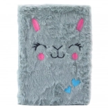 Il quaderno in peluche a righe con il motivo ricamato del coniglietto grigio è carino e utile, catturando l'occhio sin dal primo sguardo. La morbida copertina in peluche in un tenue grigio è decorata con il volto ricamato del coniglietto con orecchie e guance rosa e due cuoricini blu, che conferiscono al prodotto un fascino e una gioia infantile.