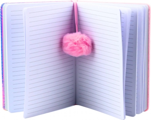 Il segnalibro funzionale terminato con un pompon rosa facilita l'accesso alla pagina selezionata e aggiunge un elemento decorativo magico. All'interno ci sono 80 fogli a righe, ideali per diario, quaderno scolastico, organizzatore o appunti creativi.