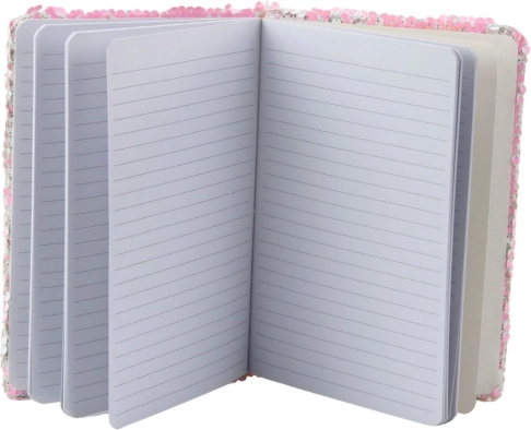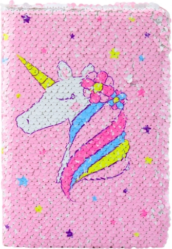 La copertina del taccuino è rivestita da paillettes mobili e scintillanti che cambiano colore da rosa a bianco con un semplice passaggio della mano. Sotto questo strato affascinante troverai un magico motivo di unicorno con decorazione floreale, che incanta ogni amante delle creature magiche.