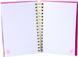 Le pagine interne hanno 90 fogli con righe rosa, che sono ideali per appunti scolastici, scrittura creativa o diario. La robusta rilegatura a spirale facilita l'apertura e lo sfogliare delle pagine. Il formato A5 è pratico per l'uso quotidiano – a scuola, a casa o al lavoro.