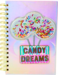 Taccuino Candy Dreams è un prodotto unico che combina funzionalità con design moderno e originale. La copertina olografica è decorata con una grande applicazione a forma di nuvola con caramelle di plastica colorate all'interno, che conferiscono al taccuino un aspetto magico.
