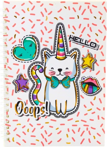Questo taccuino con il motivo fiabesco del gatto unicorno è adatto sia per la scuola che per la scrittura a casa o per un diario per bambini. La rilegatura a spirale vi permette di aprire facilmente le pagine e di scrivere comodamente su ciascun lato. Il suo formato compatto A5 è ideale per essere trasportato nello zaino, nella borsa o nel cassetto.