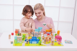 Grazie a questo set completo, i bambini possono costruire edifici tipici della città come scuole, stazioni di polizia, caserme dei vigili del fuoco, aeroporti, ospedali, banche, ristoranti, negozi di animali e altro ancora. Il giocattolo è realizzato con materiali naturali, biodegradabili e ipoallergenici, garantendo la massima sicurezza.
