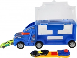 Il camion trasportatore in plastica offre ai bambini tanta azione e ordine: nel box trasparente possono portare due mini macchinine e gli accessori, e grazie alla rampa ribaltabile le caricano e scaricano con facilità. La ruota libera garantisce una guida fluida senza batterie e un controllo comodo.