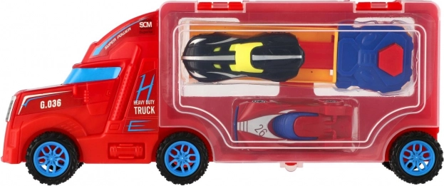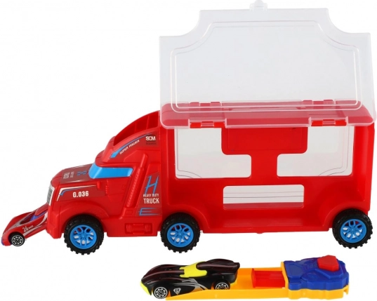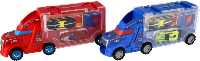 Un pieno di divertimento a quattro ruote! Questo camion trasportatore in plastica con vano portaoggetti trasparente e rampa ribaltabile trasporta ed espone mini macchinine. Grazie alla ruota libera, al facile controllo e alla struttura resistente, è ideale per giocare in casa e all’aperto. Disponibile in 2 varianti di colore.