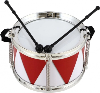 Questo tamburo di plastica più piccolo favorisce il senso del ritmo, la motricità e la percezione musicale dei bambini. È leggero, facile da trasportare e intuitivo da suonare: basta indossare la tracolla, prendere le bacchette e iniziare a scoprire il mondo della musica.