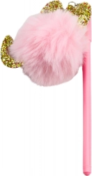 La penna ha una lunghezza di 17 cm e scrive con inchiostro blu di spessore 0,5 mm, garantendo una scrittura precisa e fluida. Il pompon rosa gli conferisce attrattiva senza compromettere il comfort di scrittura. Perfetta come regalo o parte di un kit creativo di cancelleria.
