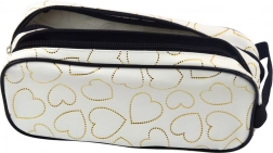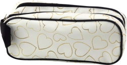 Astuccio scolastico bianco con cuori d'oro a due scomparti