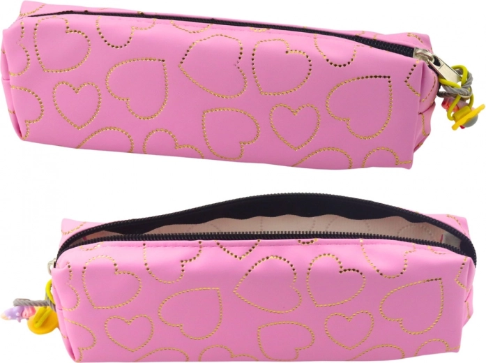 L'astuccio rosa con cuori dorati è un accessorio stiloso e pratico per ogni studente o professionista. Questo astuccio si distingue per la sua dimensione compatta e la costruzione leggera, il che lo rende una scelta eccellente per custodire gli strumenti essenziali di scrittura, come penne, matite, pennarelli o evidenziatori. Le sue dimensioni consentono un facile trasporto nello zaino o nella ventiquattrore per il lavoro.
