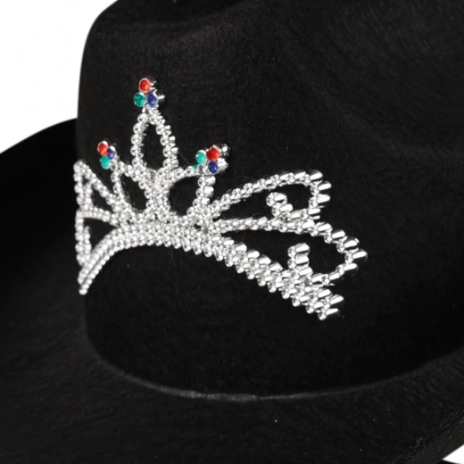 Il cappello da cowboy nero è decorato con una corona d'argento, ideale per ogni fascia di età. Un accessorio alla moda che ti renderà inconfondibile.