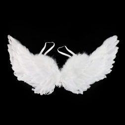 Ali d'angelo leggere ed eleganti ricoperte di piume bianche, accessorio ideale per un costume da angelo. Scelta eccellente per San Nicola, feste di Natale, servizi fotografici o carnevali. Le cinghie elastiche garantiscono un porto comodo.