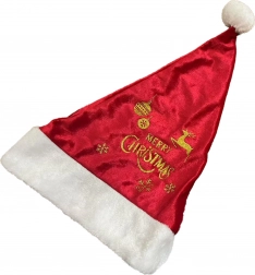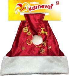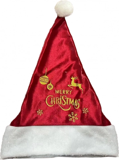 Questo elegante cappello di Natale è un ottimo accessorio per tutte le occasioni natalizie. La sua base rossa è arricchita da una stampa decorativa dorata che attira l'attenzione. Il pompon bianco in cima conferisce al cappello un aspetto tradizionale.