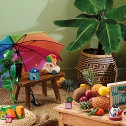 Questa deliziosa macchinina in legno è il giocattolo ideale per i bambini piccoli. Al suo centro siede un piccolo leoncino con criniera colorata e sulla sua testa è posto un clacson che suona quando viene premuto. Ciò stimola l'interazione e allo stesso tempo suscita interesse nella scoperta.