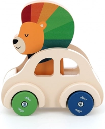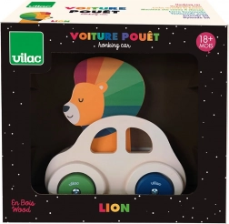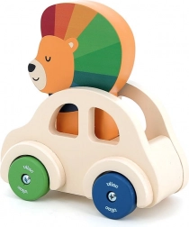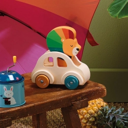 Auto in legno con clacson a forma di leone porta gioia e divertimento al gioco del tuo bambino. Grazie al clacson e ai dettagli colorati sviluppa la motricità fine e l'immaginazione.