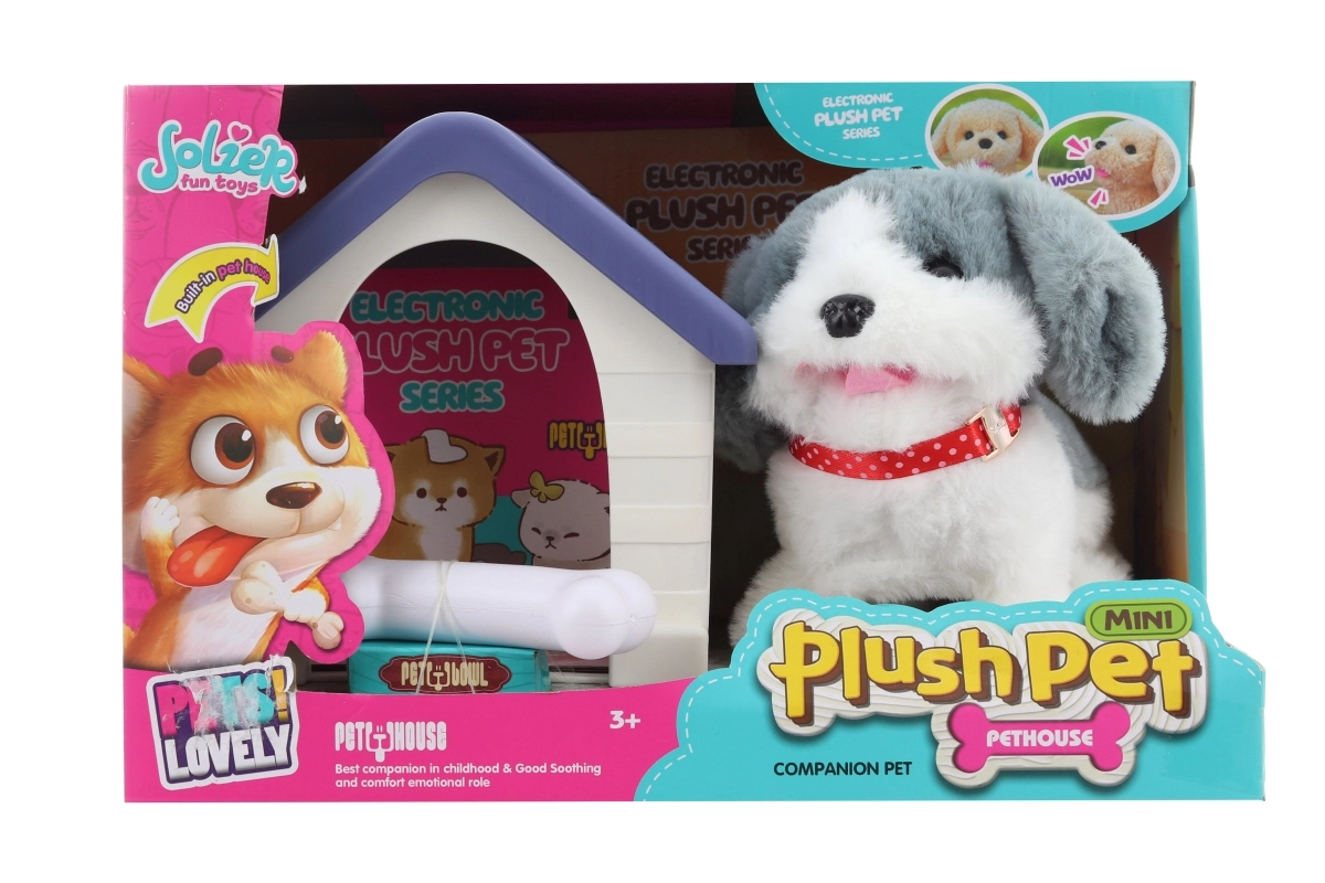 La confezione include non solo il cagnolino, ma anche la sua cuccia e un giocattolo - un ossicino. Realizzato in plastica e peluche, garantisce un tocco piacevole e un'alta resistenza. Un regalo perfetto per ogni occasione!