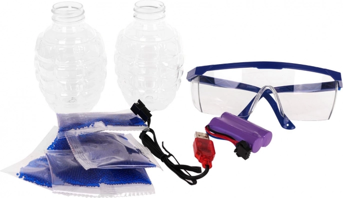 Pistola a gel automatica grigia per bambini dai 14 anni in su. Include palline e accessori. Facile da usare e occhiali di sicurezza.
