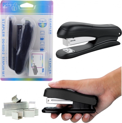 Incontra la nostra utile cucitrice da ufficio dotata di un set completo di graffette. Ideale per l'uso quotidiano in ufficio, a scuola o a casa, assicura una rapida e organizzata gestione dei documenti grazie alla sua robusta struttura e alla presa confortevole.