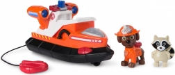 Zuma, alto circa 5 cm con la sua divisa da pompiere, è pronto a salvare la situazione. La barca dei pompieri è dotata di un anello di salvataggio fissato a una linea, garantendo avventure piene di azione. A Zuma aggiunge fascino anche un piccolo procione, che può essere salvato. I bambini possono premere il pulsante per lancia l'anello di salvataggio dove il procione si inserisce perfettamente. Grazie allo stile originale di Paw Patrol, questo giocattolo appare esattamente come nella serie, ispirando i bambini a vivere avventure.
