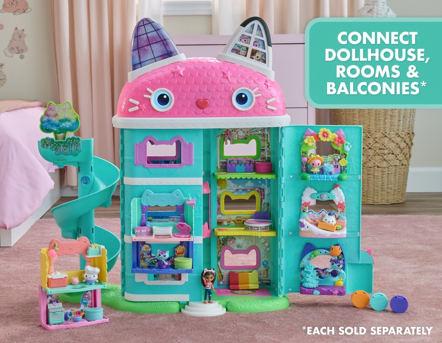 Entra nel magico mondo del film "La Casa di Gabi il Gatto" con il set Paw-Some Party Story! Questo set offre una festa da ballo per bambole, grazie alle figure di DJ Gattino e Mico, e fantastici accessori felini come altoparlanti, giradischi e supporto per microfono.
