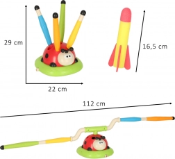 Il set include: coccinella (parte principale), divisore in plastica, tubi di diverse lunghezze e tipi per saltare, pompa a pedale, cerchi da lancio, freccette, telecomando e cacciavite per il montaggio. Tutto accuratamente progettato per un gioco sicuro e stimolante.