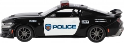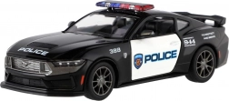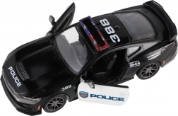 Auto della polizia stilosa per piccoli piloti e collezionisti! Modello dettagliato del FORD MUSTANG DARK HORSE 2024 in edizione Police in scala 1:38, con struttura in metallo, retrocarica (pull-back) per correre in avanti e porte apribili per un gioco realistico. Lunghezza 13 cm, adatto ai bambini dai 3 anni.