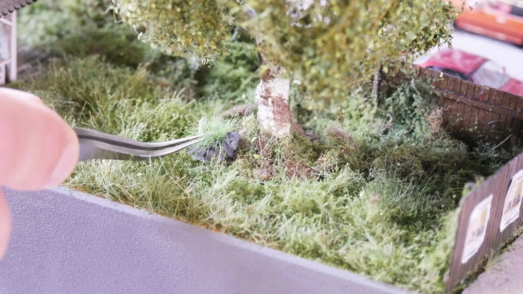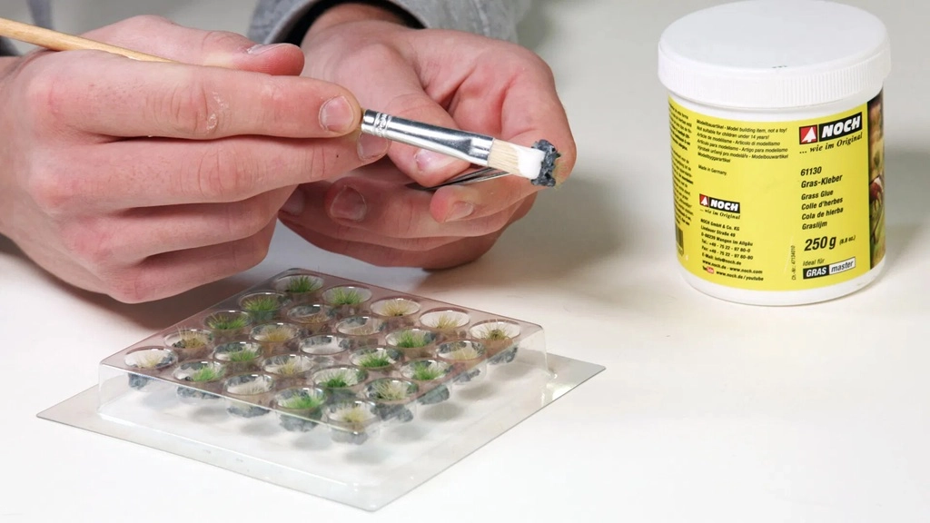 Si incollano facilmente su qualsiasi superficie con colla comune per paesaggi. Per l'integrazione in aree erbose più grandi è possibile fissarli direttamente sullo sfondo spalmato con colla per erba. Il successivo ricoprimento conferisce un'area verde che appare molto naturale.