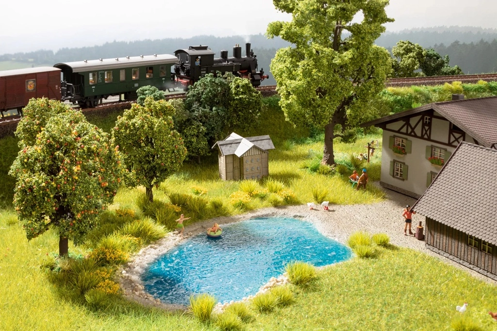 Ti offriamo un modo semplice per creare superfici d'acqua realistiche nella costruzione di un paesaggio modellistico. Questo specifico medium d'acqua modellistica è ideale per acque calme e poco profonde, come laghi sabbiosi, stagni o fiumi.
