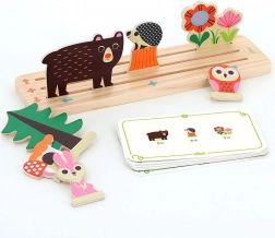 Gioco di logica in legno con bellissime illustrazioni di Ingela P. Arrhenius, ideale per sviluppare la percezione spaziale, il pensiero logico e la motricità fine dei bambini. Usando pezzi di legno e carte da gioco, i bambini imparano a percepire le relazioni spaziali come sinistra, destra, sopra e sotto in base alle indicazioni.