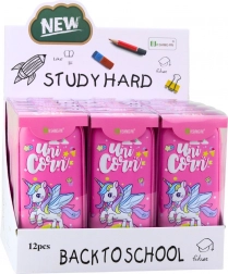 L'interno dell'astuccio è progettato con enfasi sul massimo comfort dell'utente - contiene portapenne ed elastici e una tasca a rete con cerniera, ideale per riporre oggetti piccoli, gomme e temperamatite. L'intero astuccio è di un rosa brillante con una stampa di un adorabile unicorno, che conquisterà il cuore di ogni bambino.