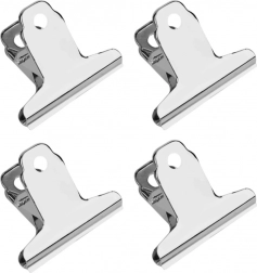 Queste clip sono realizzate in metallo resistente, che garantisce durabilità e possibilità di uso ripetuto. La loro forma semplice e la superficie lucida cromata conferiscono loro un aspetto professionale. Grazie al foro sull'impugnatura, puoi facilmente appendere le clip su una lavagna o un gancio.